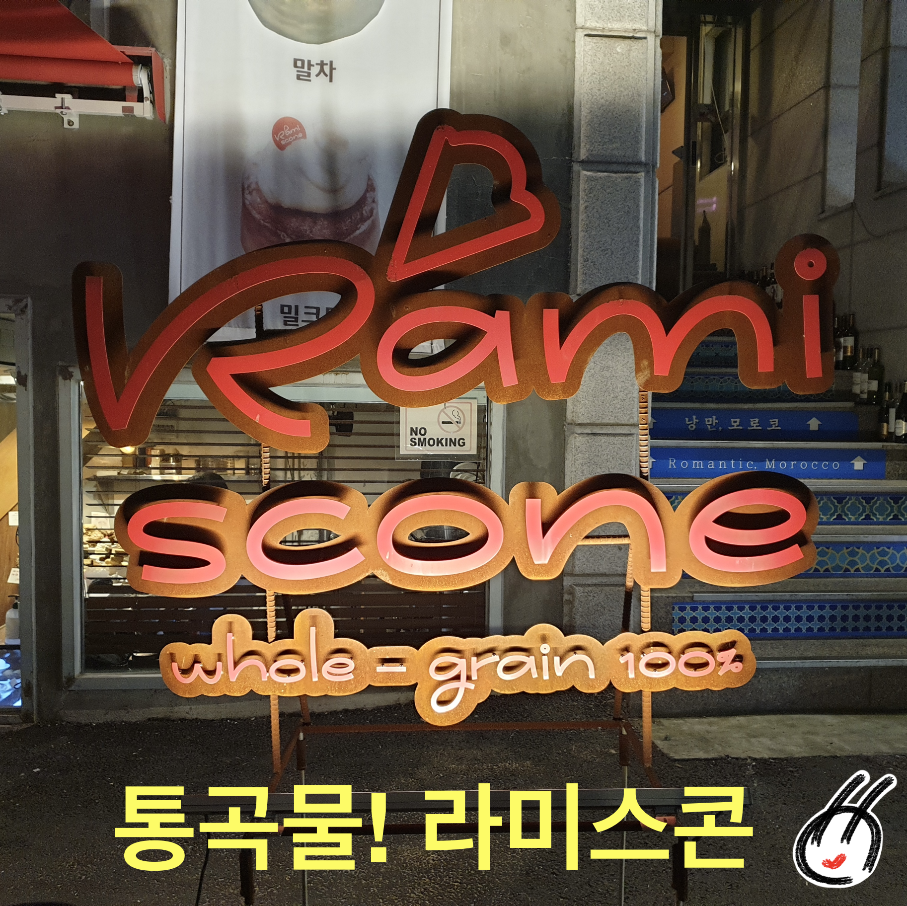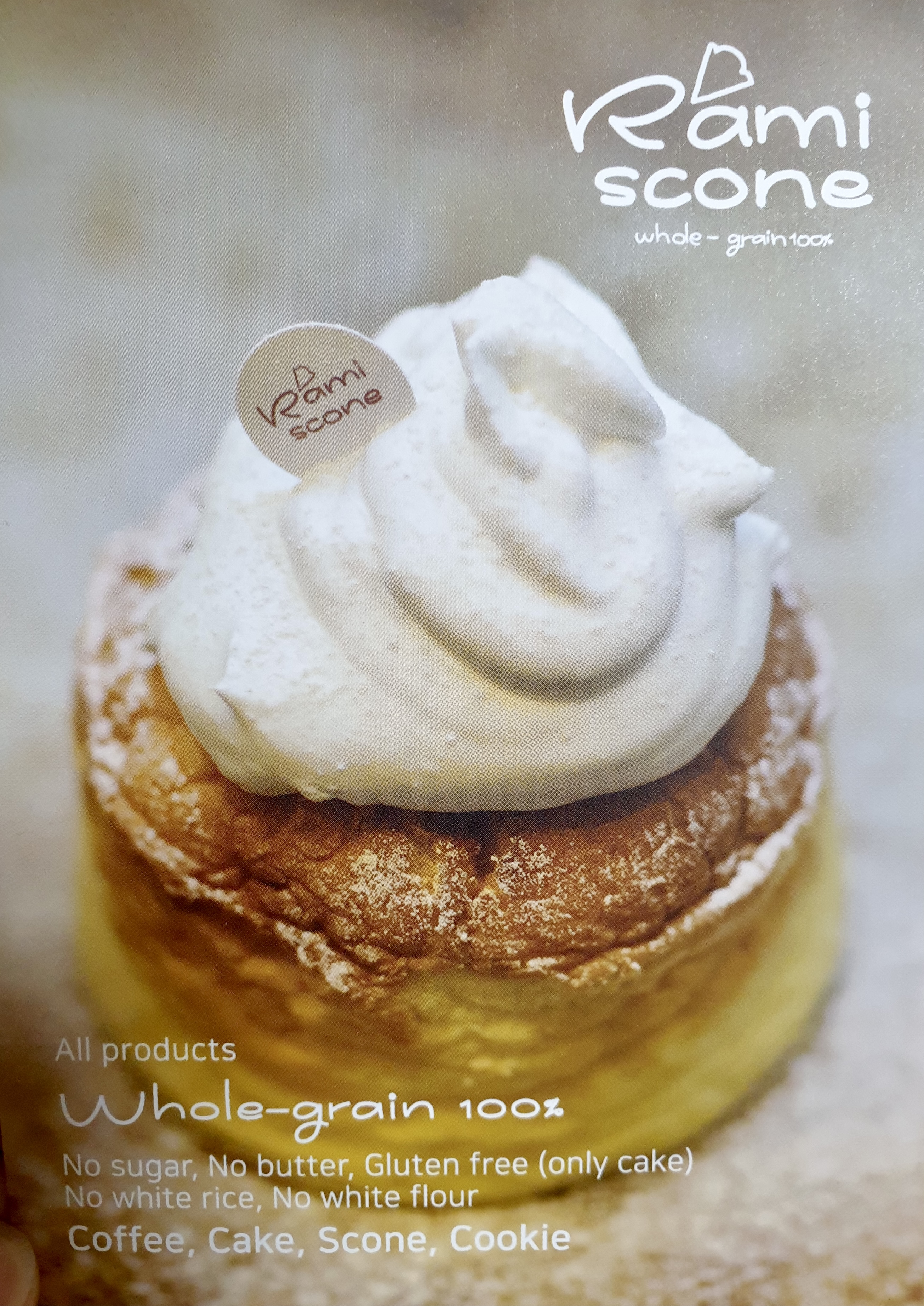 입간판에서 보이듯 라미스콘에서는 디저트와 커피를 판매하고 있습니다. 그런데 일반 디저트가게와 다른 점은 디저트 원재료가 모두 통곡물이라는 것입니다. 저는 통곡물디저트라고 하면 식감이 거칠고 모양이 투박할 것이라는 고정관념을 가지고 있었는데, 여기에 진열되어 있는 디저트들을 보고 생각이 바뀌였습니다.ㅋㅋ